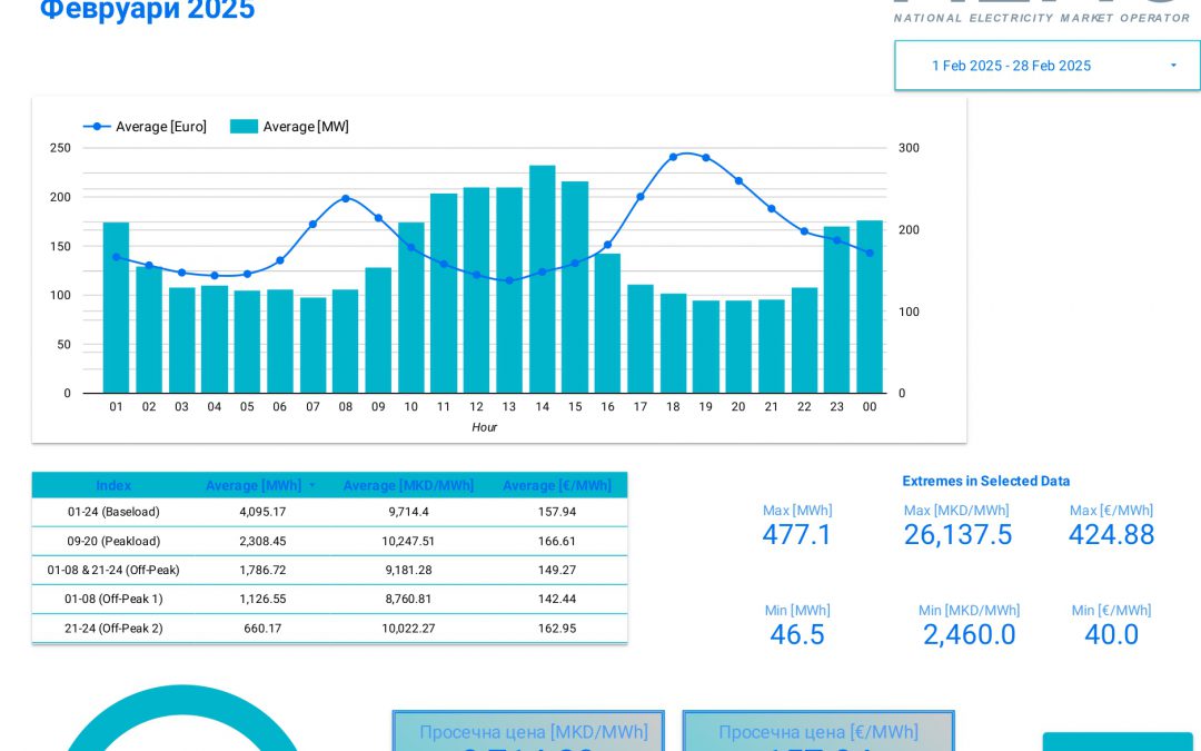 Податоци за истргувана електрична енергија на Mакедонската берза – ноември 2025