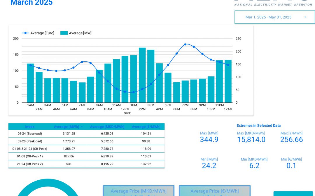 Податоци за истргувана електрична енергија на Mакедонската берза – ноември 2025