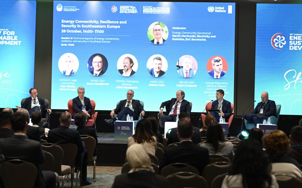 At the panel session “Energy Connectivity, Resilience and Security: Regulatory and Legal Aspects”, held within the framework of the 14th International Forum on Energy for Sustainable Development (14-IFESD) and moderated by Martin Martinovski, electricity and statistics expert at the Energy Community, Zoran Gjorgjievski, CEO of the National Electricity Market Operator (MEMO DOOEL Skopje), spoke alongside colleagues from the region — heads of power exchanges from Hungary, Serbia, and Montenegro, as well as representatives of regulatory authorities.
