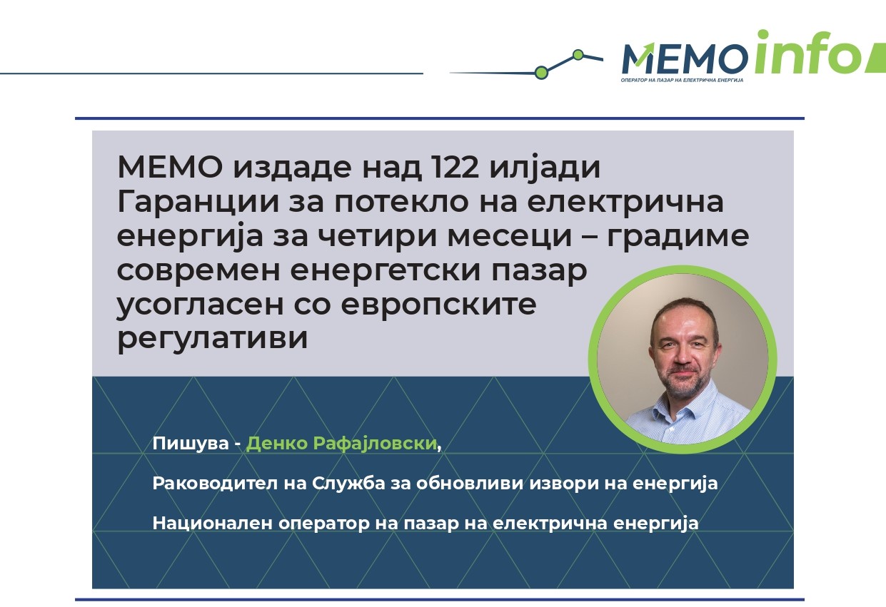 МЕМО издаде над 122 илјади Гаранции за потекло на електрична енергија за четири месеци – градиме современ енергетски пазар усогласен со европските регулативи