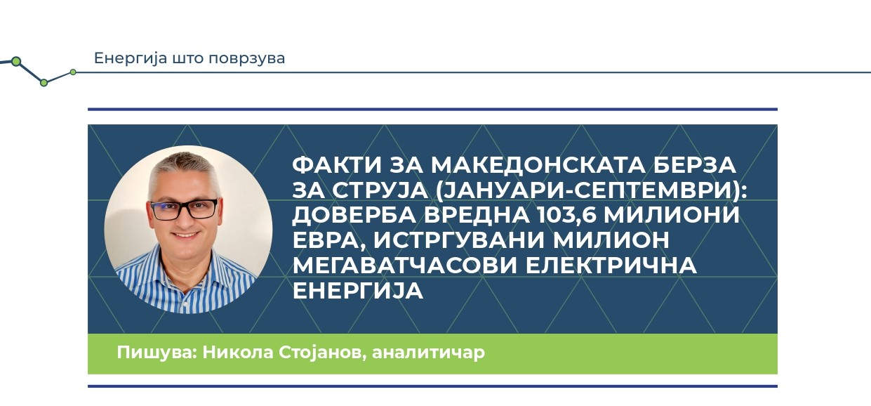 ФАКТИ ЗА МАКЕДОНСКАТА БЕРЗА ЗА СТРУЈА (ЈАНУАРИ-СЕПТЕМВРИ 2025): ДОВЕРБА ВРЕДНА 103,6 МИЛИОНИ ЕВРА, ИСТРГУВАНИ МИЛИОН МЕГАВАТЧАСОВИ ЕЛЕКТРИЧНА ЕНЕРГИЈА