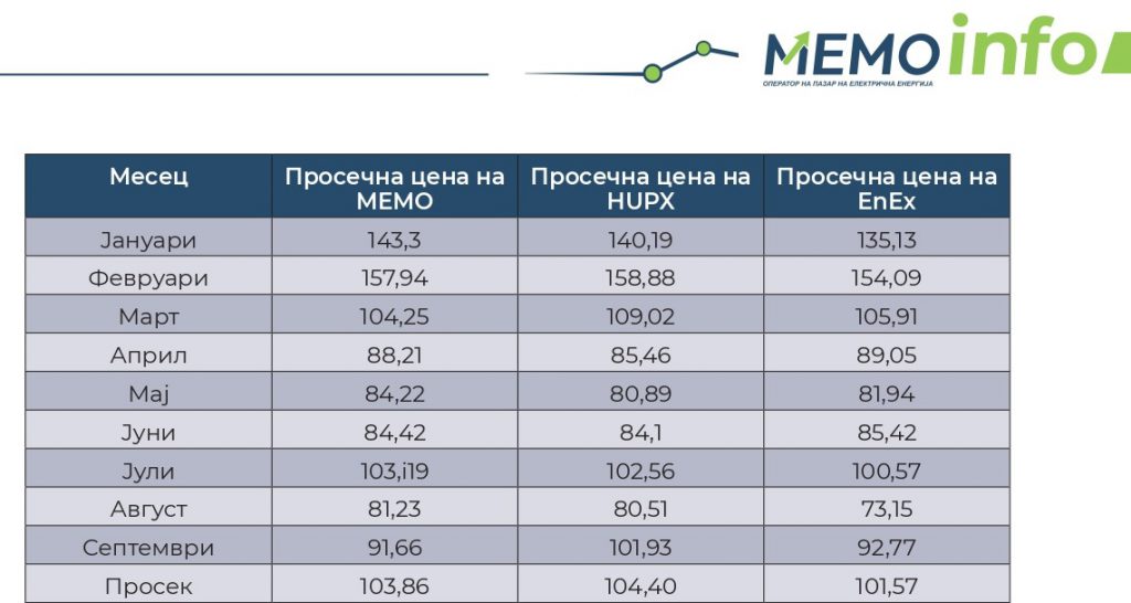 Согласно извештајот на Националниот оператор на пазар на електрична енергија – МЕМО ДООЕЛ Скопје,...